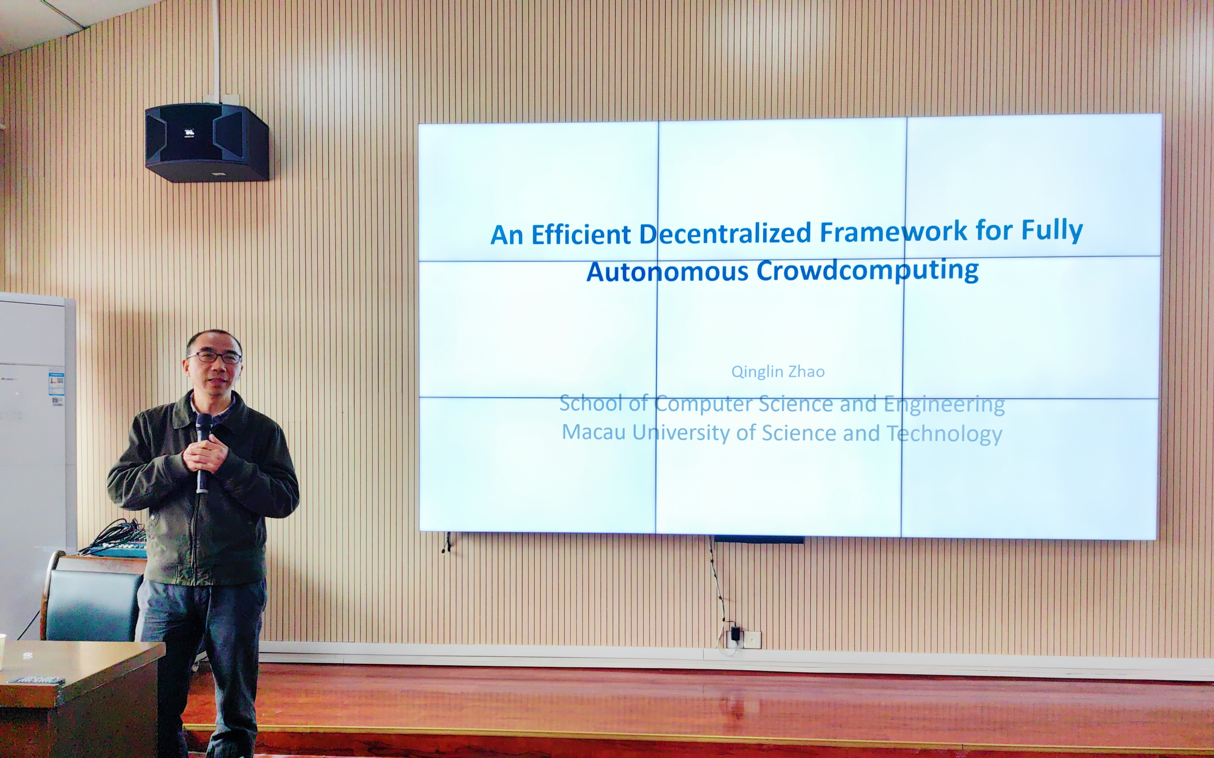 赵庆林教授以《Efficient Decentralized Crowdcomputing Framework with fully Autonomous Task Selection》为主题,针对去中心化群体计算中任务分配效率低的问题,提出一种融合混合架构与智能决策机制的优化框架。赵庆林教授指出,现有全自主任务选择(FATS)框架存在任务选择冲突、链上开销高、资源分配次优三大瓶颈,为此在报告中展示了框架设计两大核心支柱:混合系统架构、智能决策机制。最后,赵庆林利用理论证明该框架实现次线性遗憾界限(O(log T)),满足个体理性与激励相容性。实验表明,相较基线方案,系统吞吐量提升40%、任务冲突减少60%,工人收益提高25%,成功平衡了个体自主性与系统整体效率。