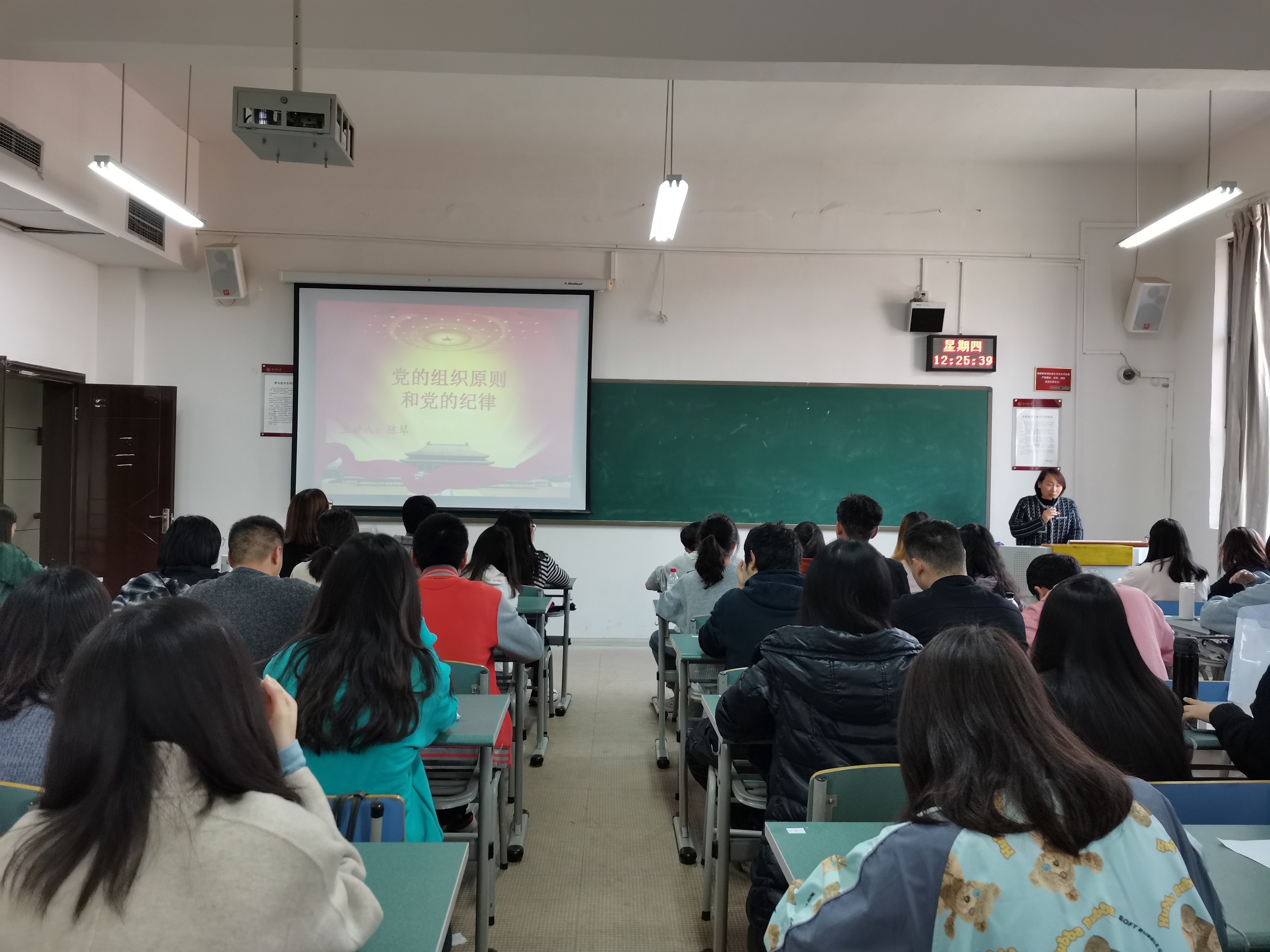 11月19日中午,公司党委纪检委员陈琴在志学楼414为2026世界杯官网入党积极分子培训班的学员们上党课,陈琴以“党的组织原则和党的纪律”为题作了精彩讲授。