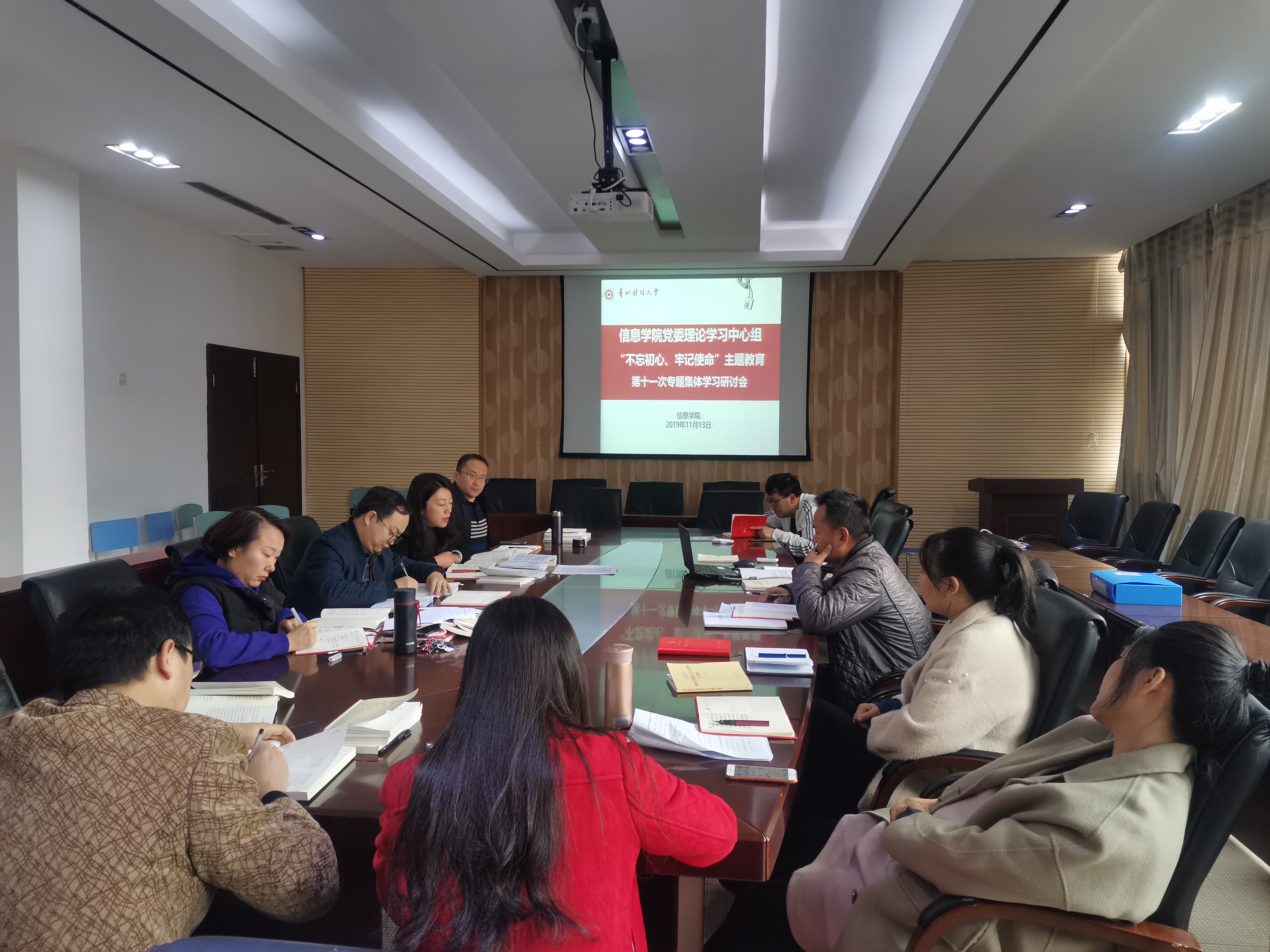公司党委理论学习中心组于11月14日早上在志学楼427会议室召开“不忘初心、牢记使命”主题教育第十二次专题集体学习研讨会,公司领导、各系(科室)负责人、党支部书记参会,卿春主持会议。