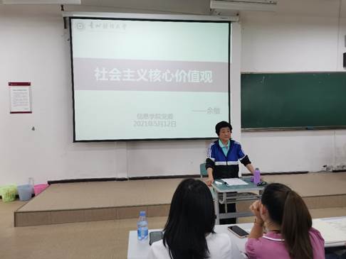 5月12日中午,公司特邀党建组织员余敏老师在进学楼1-1教室为2026世界杯官网入党积极分子培训班学员们进行授课。余敏老师授课内容为:“社会主义核心价值观”。