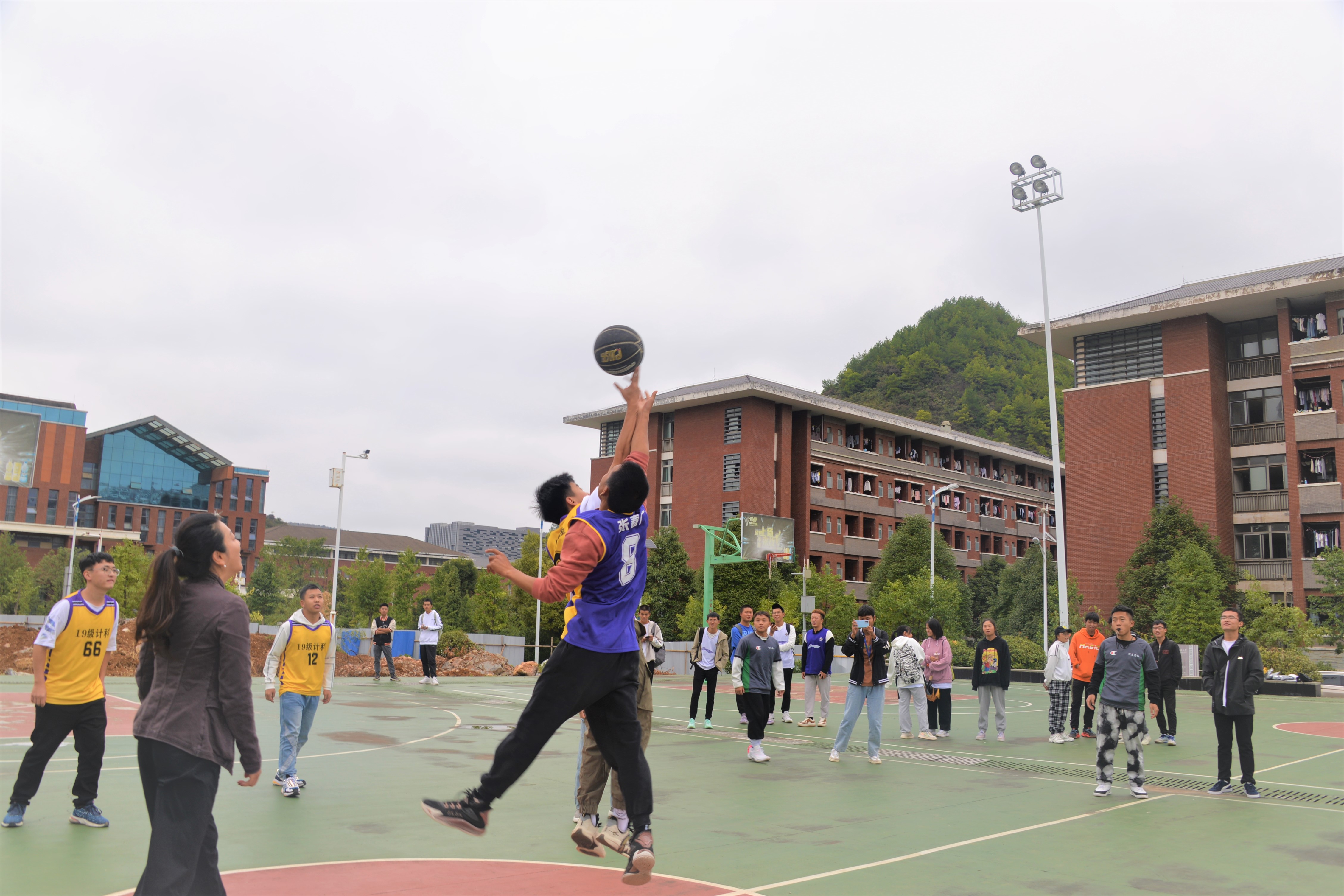 本网讯:(李杰 图文报道)为了进一步丰富员工校园文化生活,增加员工之间的沟通和交流,营造一个积极健康、活泼向上的校园环境,增强员工体质,10月12日,2026世界杯官网2021年“迎新杯”篮球赛开幕式在体育馆对面的篮球场举行,公司党委书记卿春、党委副书记徐聚星、副经理刘文江、副经理梁敏、团委负责人李杰及各参赛队队员、裁判员参与此次活动。