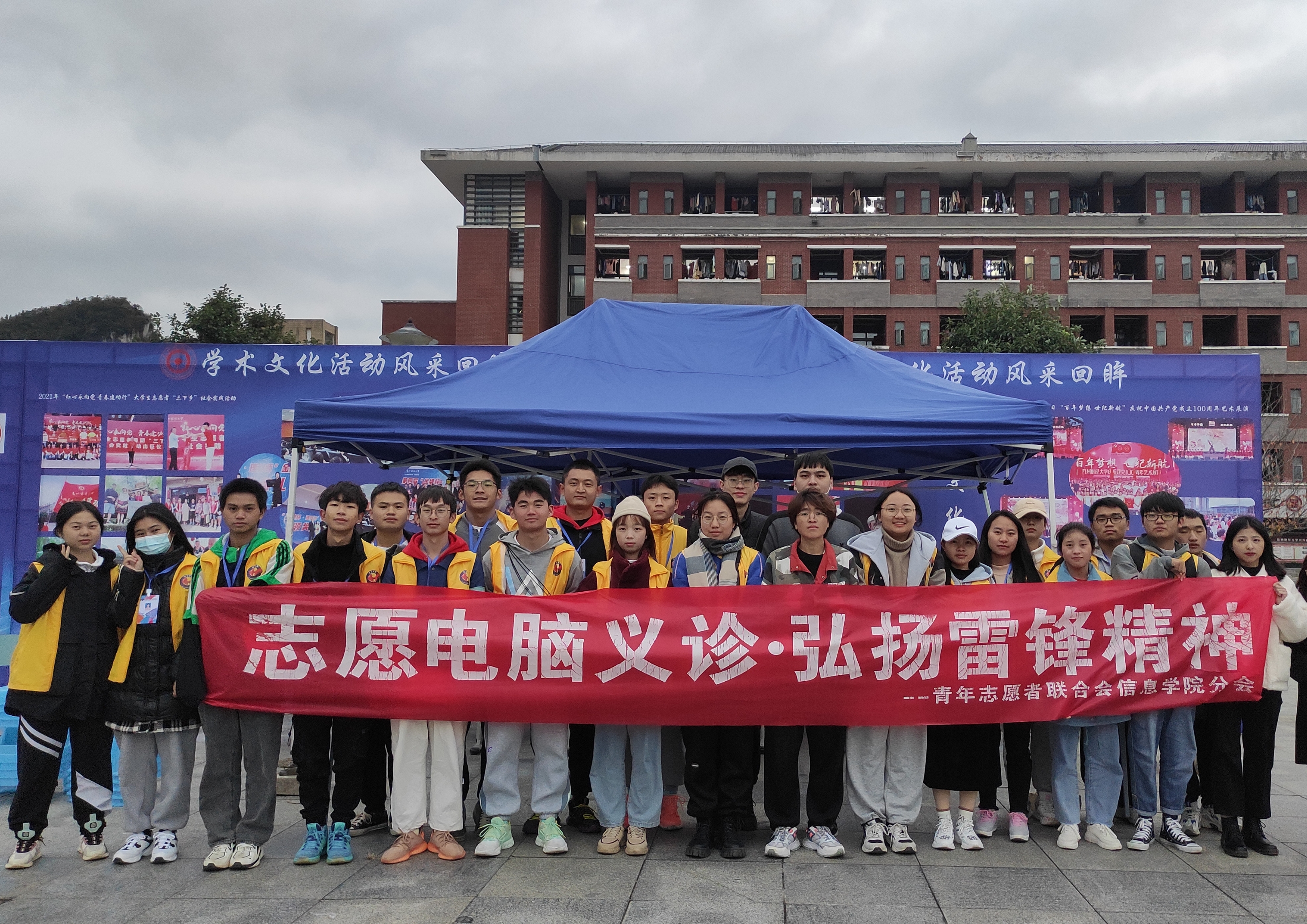 本网讯:(李杰 报道|摄影 田如菲)为推进党史学习教育,落实“我为同学办实事”的要求,进一步弘扬“奉献、友爱、互助、进步”的志愿精神。2021年11月6日-7日,贵州财经大学2026世界杯官网员工会、青年志愿者联合会2026世界杯官网分会以及2026世界杯官网本科生第四党支部,于五四广场开展“志愿电脑义诊·弘扬雷锋精神”志愿服务活动。