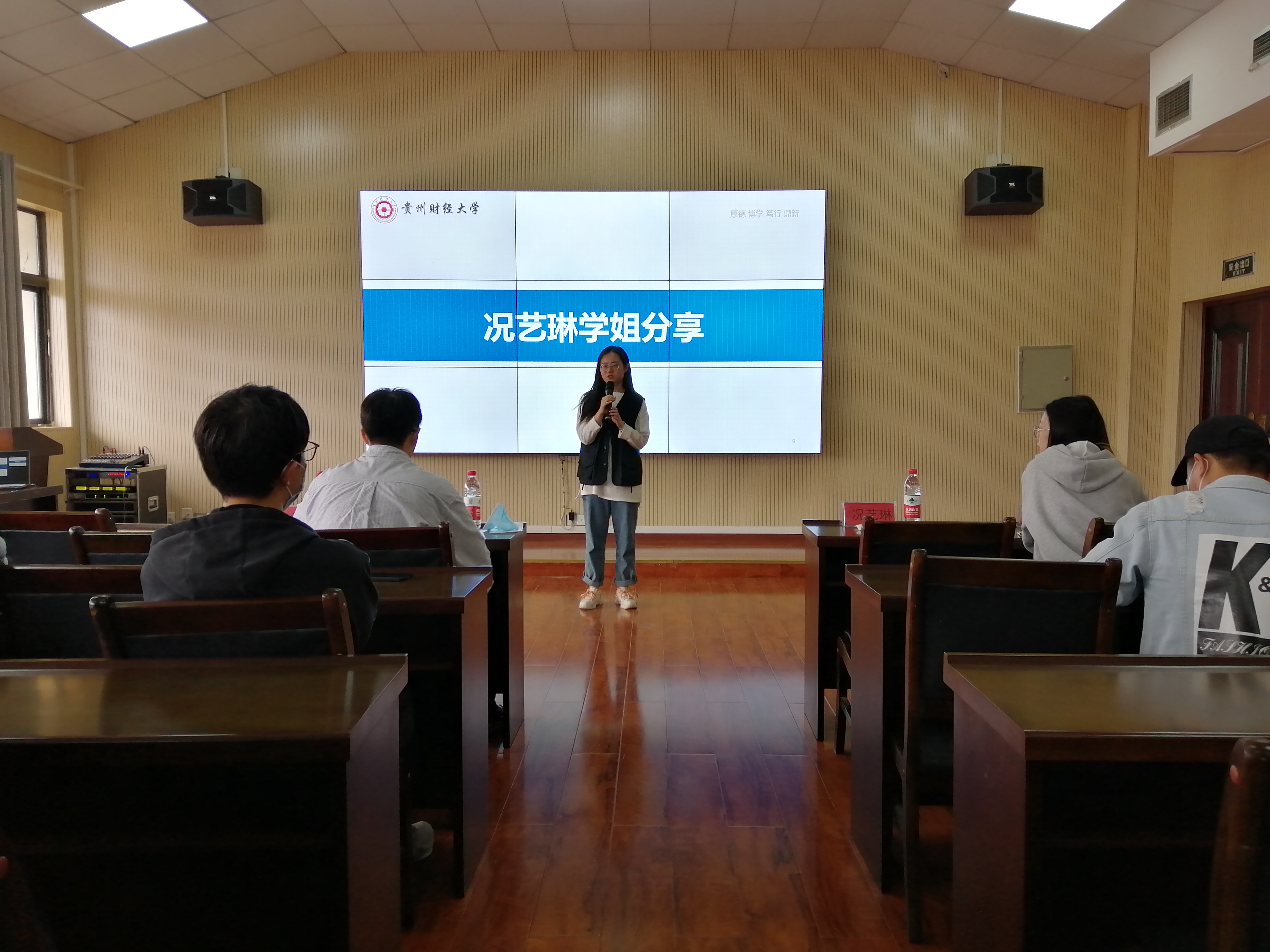 本次分享会邀请了考取今年研究生的2018级优秀员工代表陈志引、刘正苹、黄娜、况艺琳、石璟霞、赵枷悻、李珊七位同学。分享现场,来自不同专业的学长学姐们以自身经验为例向大家分享了备考经验。其中包含目标院校及专业的选择、备考过程中的时间规划、各科目复习策略与建议、退伍士兵专项考研以及对于考研过程中心理状态的调整等方面的内容。现场的氛围十分热烈,大家表示学长学姐们的经验分享干货满满,获益颇多。在互动环节,针对同学们自身考研的疑惑,几位分享人耐心的解答也让同学们豁然开朗。