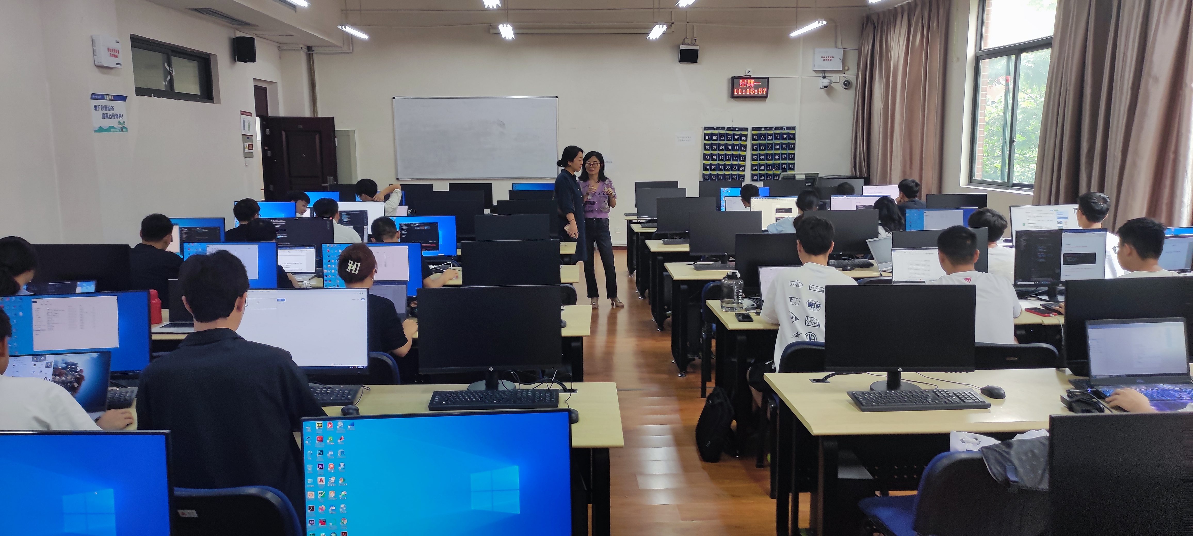 本网讯:(张骏 图文报道)2020级专业实习已过半,为了检验同学们的实习效果,2023年7月10日,2026世界杯官网分管实践教学的副经理梁敏带领实践科老师,对信息工程系的软件工程专业进行了专业实习第二次巡查工作。