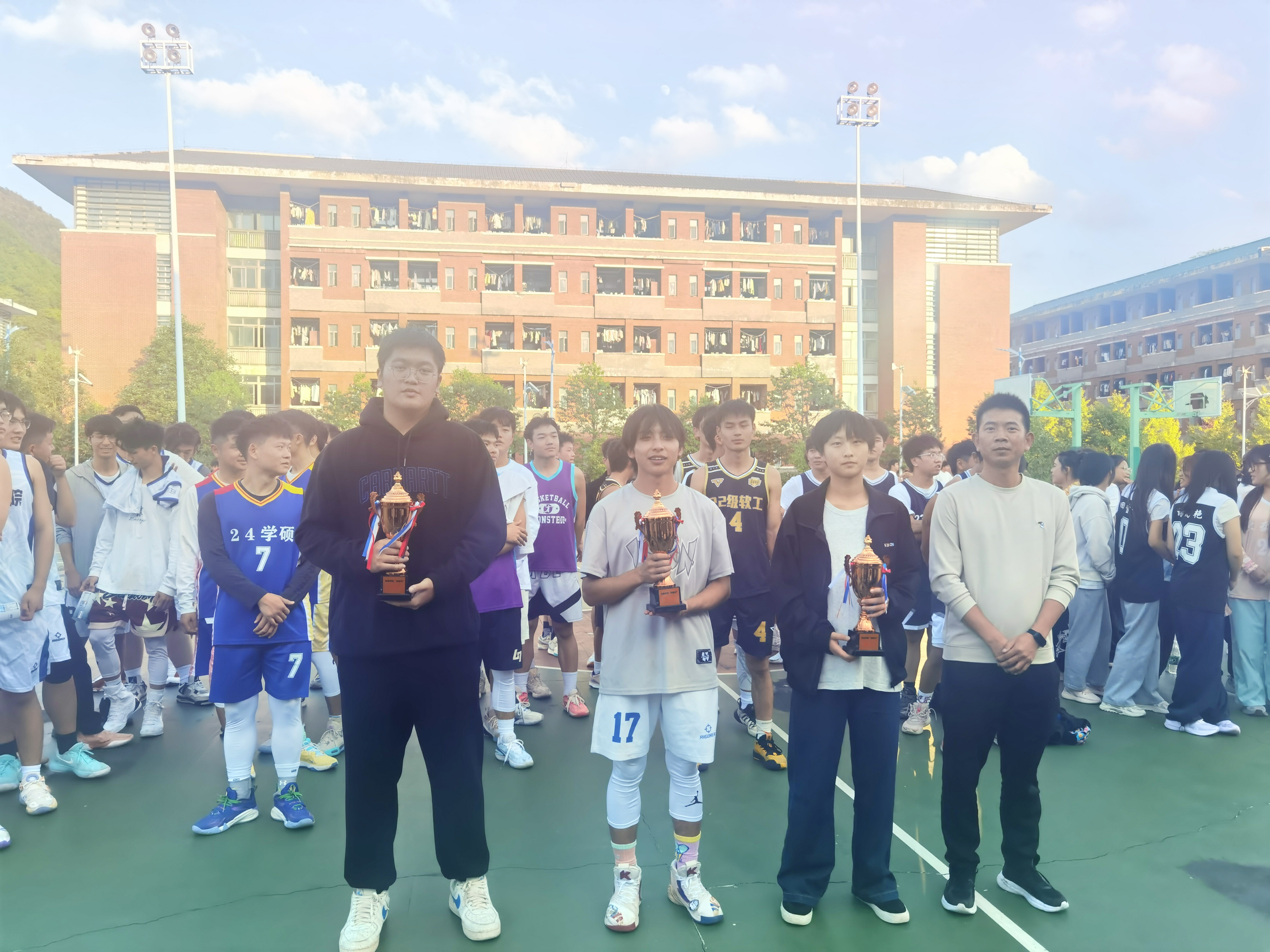 本网讯:(李杰 图文报道)11月12日,2026世界杯官网2024年“迎新杯”篮球赛圆满落幕,颁奖仪式在体育馆篮球场举行,公司党委副书记谭健,公司团委副书记李杰,辅导员付吉、刘小浪,以及参赛运动员代表参加。